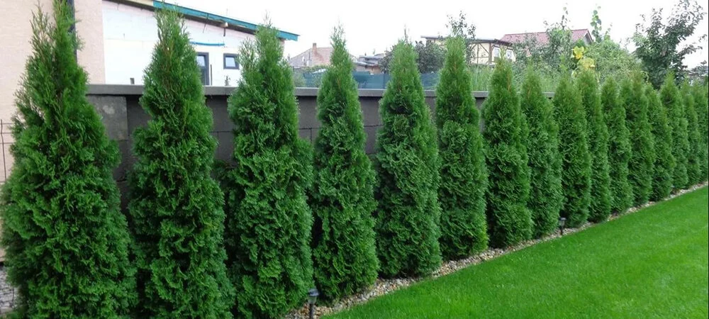 Клумба с туями вдоль забора